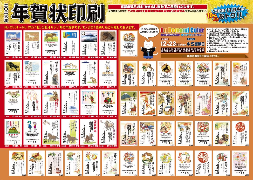 年賀状印刷承ります!(見本帳はお店でご覧ください。)